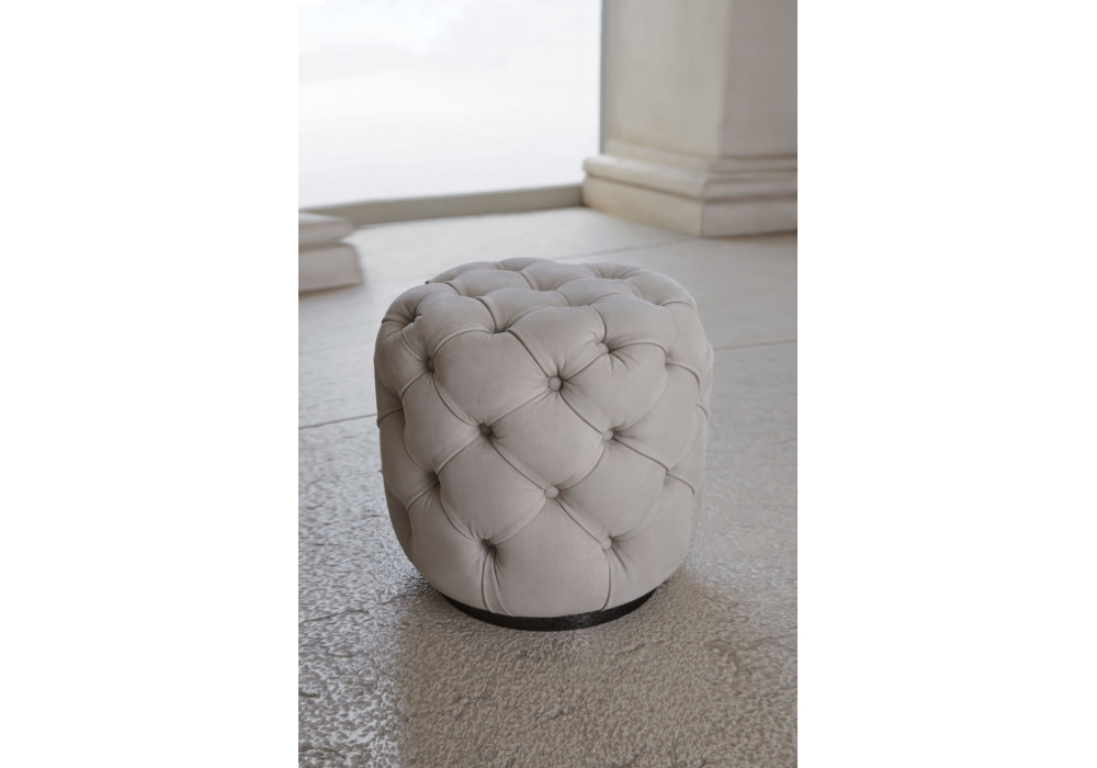 Paris conçu par Joe Garzone pour Conte Casa est un pouf réalisé avec une base en métal peint ou en laiton bruni, structure recouverte de tissu ou de cuir. Disponible en différentes finitions.