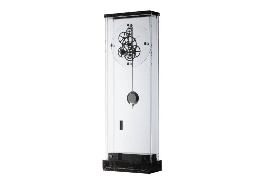 With Adagio designed by Teckell & Takto, time becomes emotion: contemporary design meets Italian craftsmanship for a technological and esthetic triumph. A case made of transparent crystal is set in a Black and Gold marble base. Inside, the clock's inner workings are well-protected yet seem to be floating in space. Adagio's avant-garde technology is displayed in its details, such as the use of diamond-like coating, or DLC.