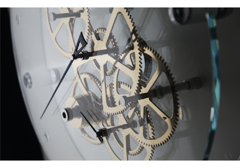 With Presto designed by Teckell & Takto, time becomes emotion. The modern definition of time. The finest engineering and esthetics combine for a precious and perfect timepiece. Two see-through crystal shells surround a 24k-gold-plated mechanism. Due to its spring-wound system, the mechanism is compact without sacrificing the precision for which Teckell clocks are famous. The spacers that separate the two sheets are also handcrafted masterpieces: lathed transparent crystal.