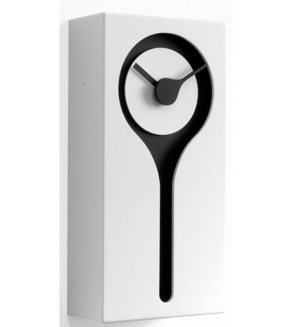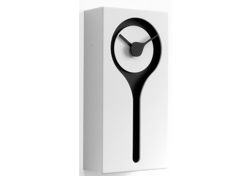 Koo Koo conçue par Studio Kuadra pour Progetti est une horloge coucou en bois de différentes finitions. Mouvement à quartz à piles. Un capteur sensible à la lumière arrête automatiquement la sonnerie en l'absence de lumière.