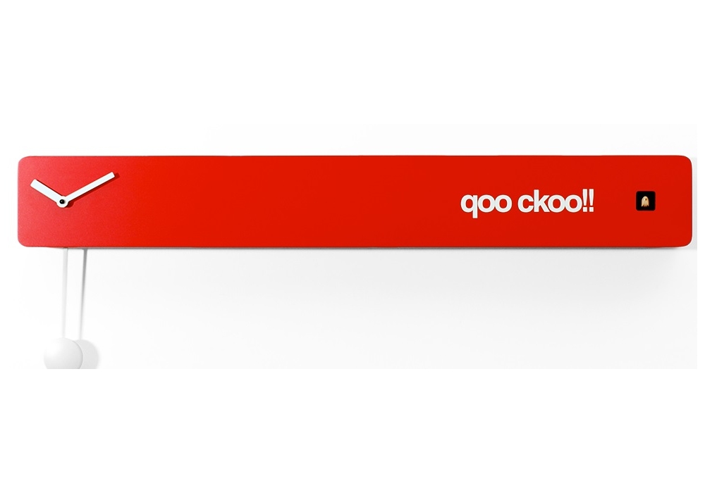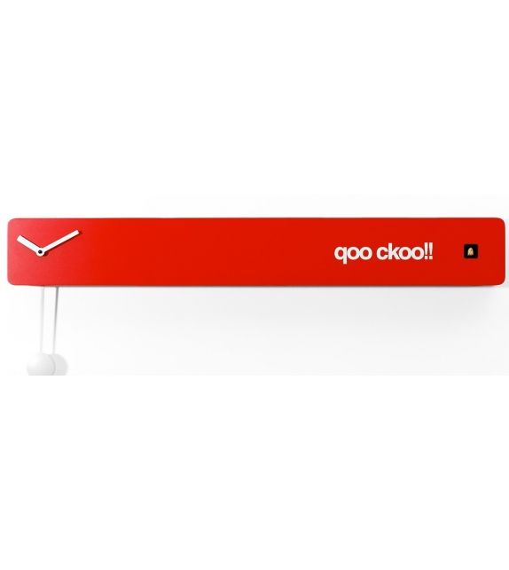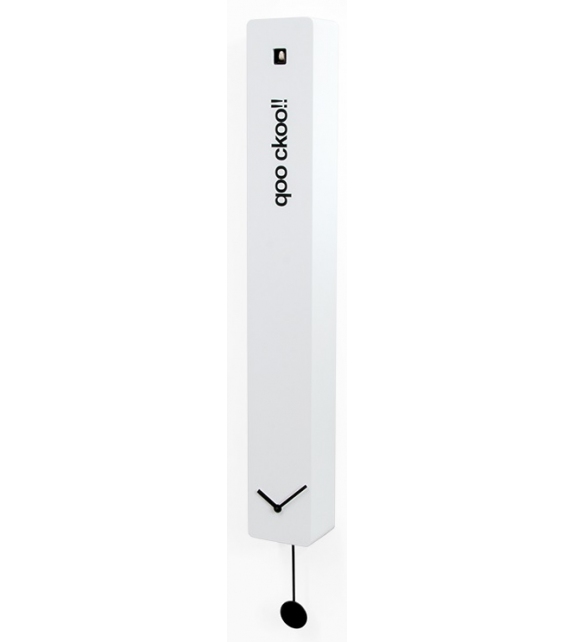 Q02 conçue par Alberto Sala pour Progressi est une horloge à coucou en bois peinte avec des peintures non toxiques. Le mouvement à piles est équipé d'un capteur photosensible qui s'arrête automatiquement de chanter en l'absence de lumière. Un bouton poussoir permet de régler l'intensité du son ou de l'éteindre complètement. Disponible en version horizontale ou verticale.