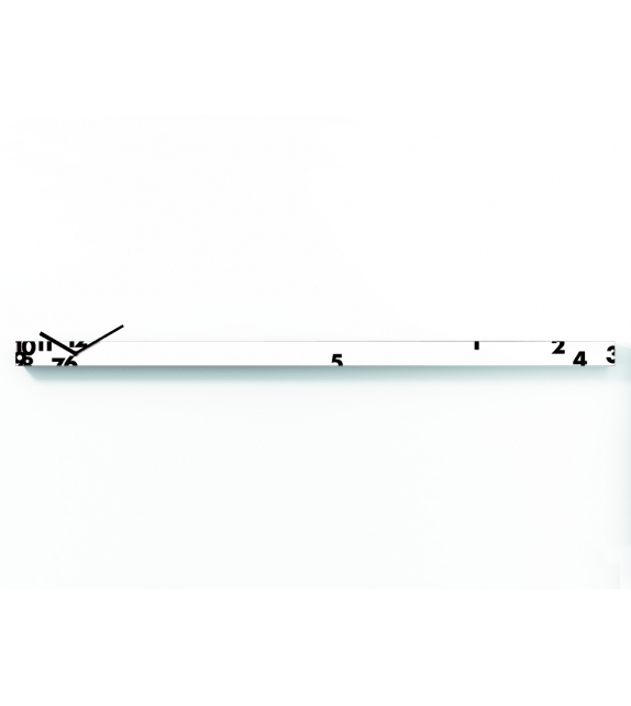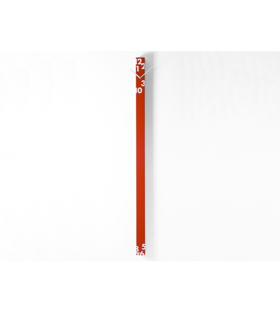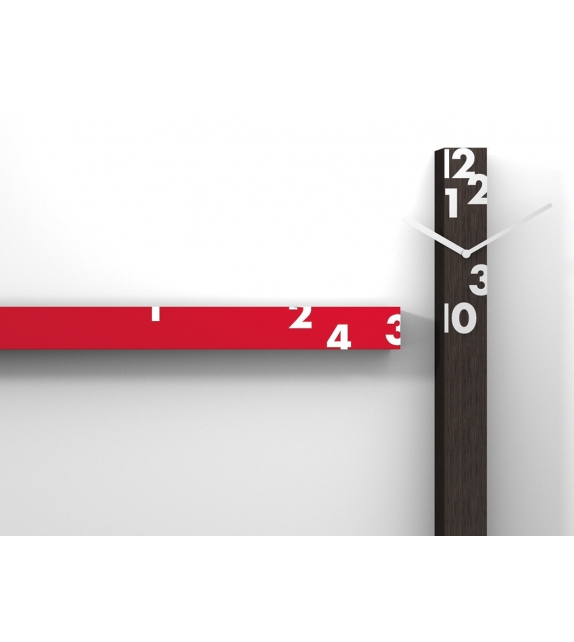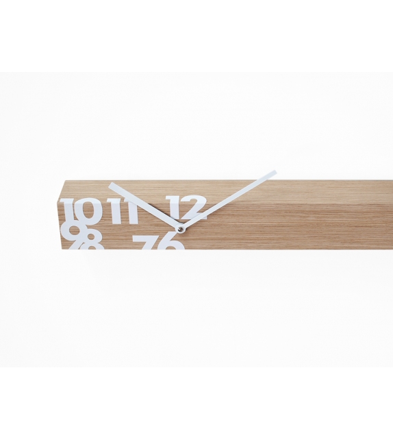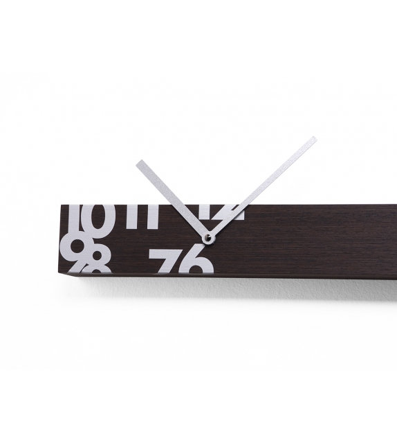 Iltempostringe conçue par Alberto Sala pour Progetti est une horloge en bois et peinte avec des peintures non toxiques et équipée d'un mouvement à quartz à piles. Disponible en version horizontale ou verticale.