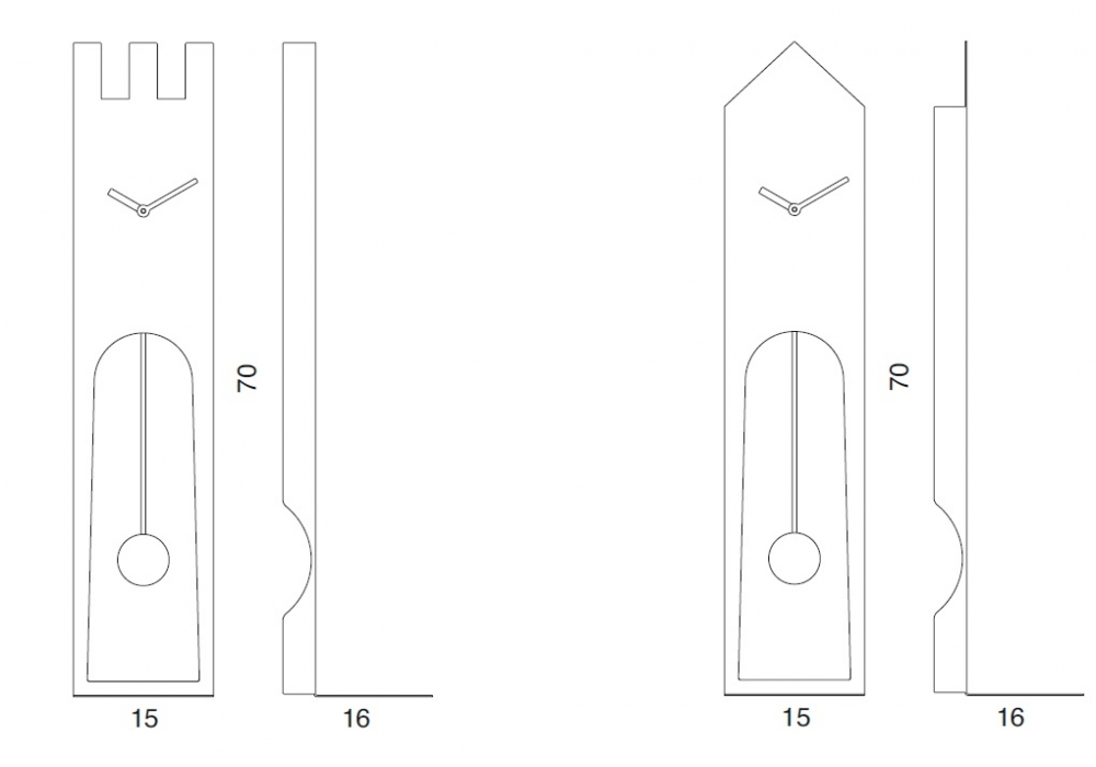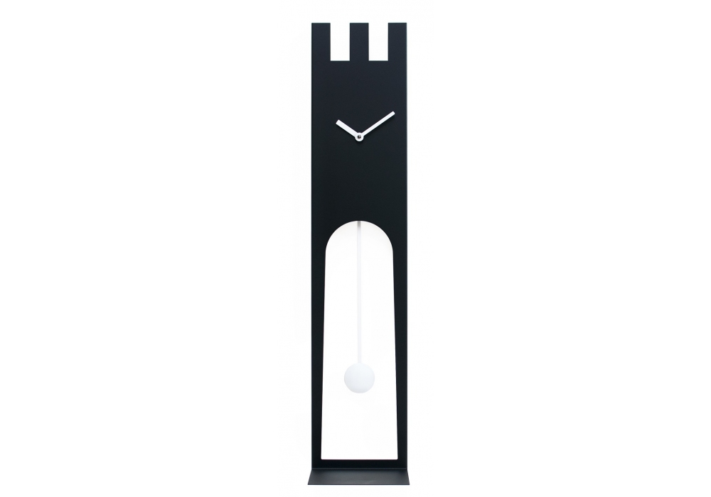 Don conçue par Francesco Paolo Maria Giuliani pour Progetti est une horloge à pendule en acier blanc ou noir. Dans la partie inférieure se trouve une étagère de support. Coloré avec des peintures non toxiques, il utilise un mouvement à piles de fabrication allemande. Disponible en différents modèles.