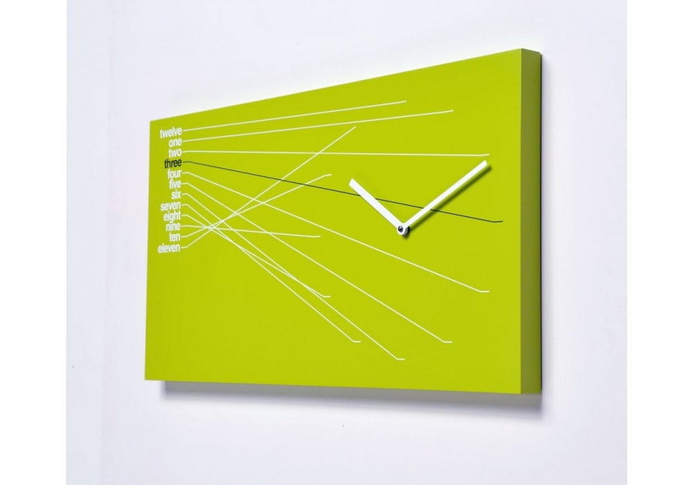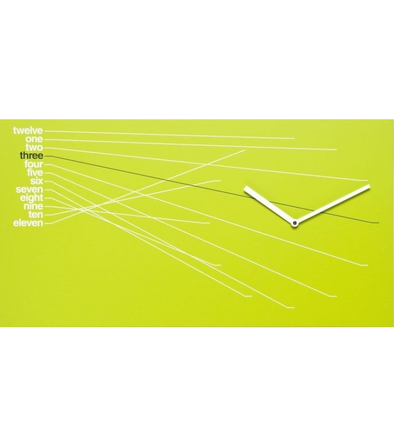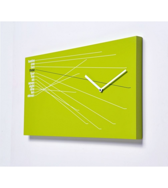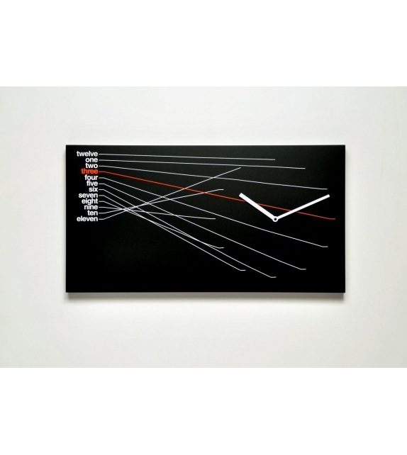 Timeline conçue par Alberto Sala rnd_lab pour Progetti est une horloge murale en bois verni en différentes finitions. Mouvement à quartz à piles.