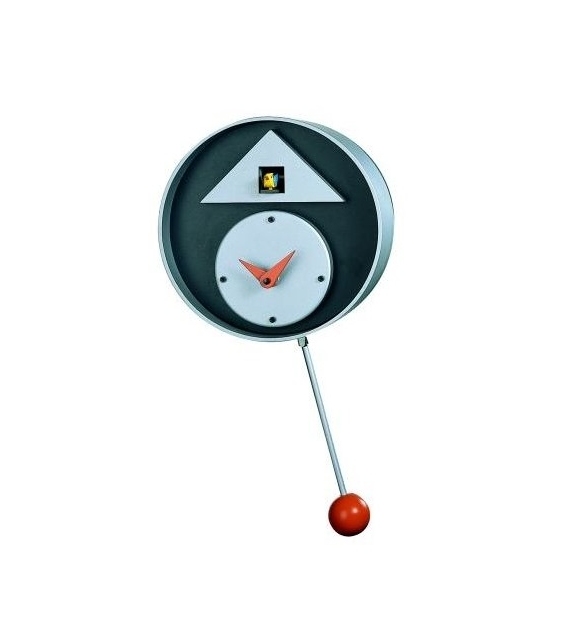 Auckland conçue par Barbero Design pour Progetti est une horloge à coucou réalisée en PVC, bois et aluminium. Mouvement à quartz à piles. Un capteur sensible à la lumière arrête automatiquement la sonnerie en l'absence de lumière.