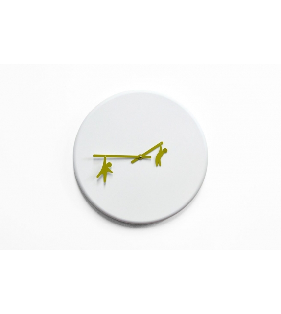 Time2play conçue par Alessia Gasperi pour Progetti est une horloge murale réalisée en bois. Mouvement à quartz à piles. Disponible en deux finitions.