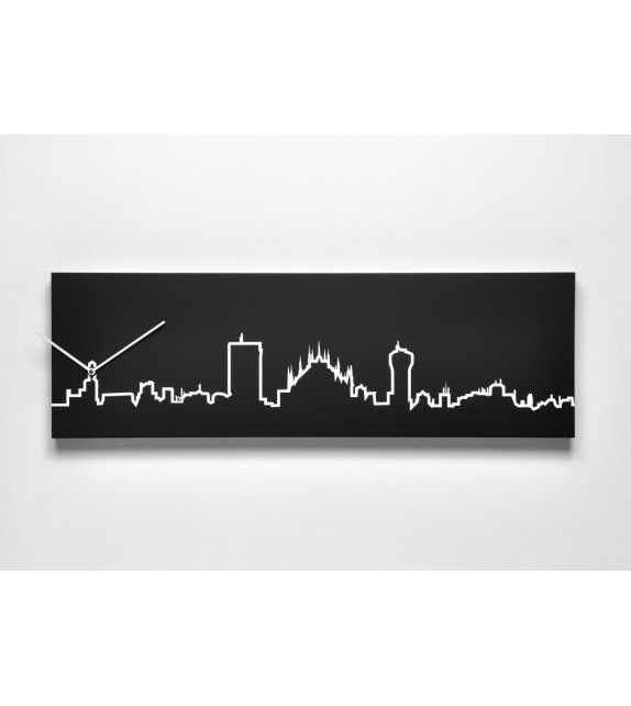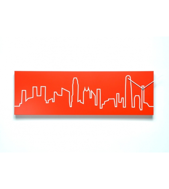 Skyline conçue par Riccardo Paolino et Matteo Fusi pour Progetti est une horloge en bois, peinte avec des peintures non toxiques dans une finition brillante. Équipé d'un mouvement à quartz à piles. Disponible en différentes versions.