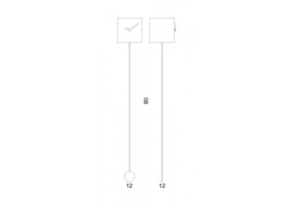 Long_time conçue par Alessia Gasperi pour Progetti est une horloge à pendule avec une structure cubique en bois de différentes finitions à partir de laquelle s'étend le long pendule blanc. Mouvement à quartz à piles.