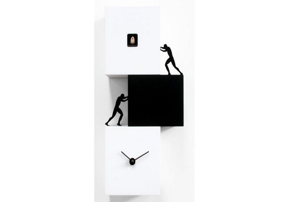 Strong Cucù 2 conçue par Antonio Farina pour Progetti est une horloge coucou murale ou de table en bois et acier. Mouvement à quartz à piles. Disponible en différentes finitions.
