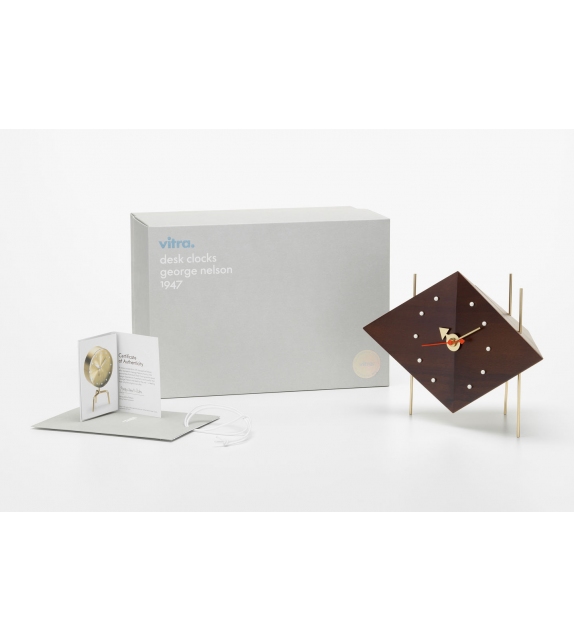 Vitra Diamond Clock: Par la diversité des matériaux utilisés et leurs formes sculpturales, les horloges de George Nelson incarnent l’esprit des années cinquante. Même de nos jours, ses horloges de table restent une alternative pleine de fraîcheur aux objets habituels de mesure du temps. Le Vitra Design Museum réédite ces créations très recherchées par les collectionneurs dans leur forme d’origine.