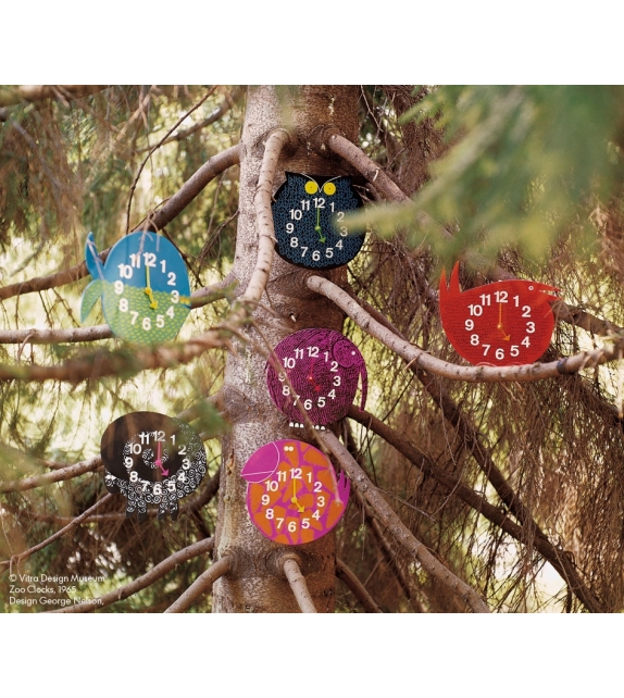 Vitra Omar the owl horloge: Multitalent par excellence, George Nelson s’est également distingué comme designer graphique. Le langage graphique de ses Zoo Timers – des figures du monde animal dessinées en couleurs vives – diffère sensiblement de la structure de ses horloges murales conçues dans les années cinquante. Les Zoo Timers permettent aux enfants d’apprendre l’heure en s’amusant.