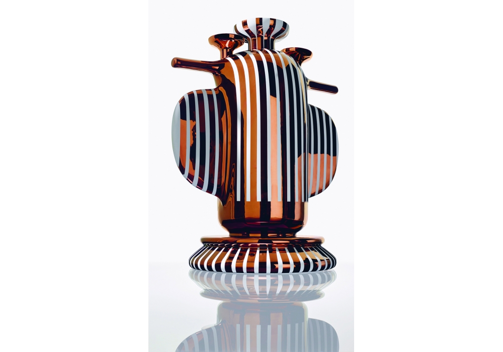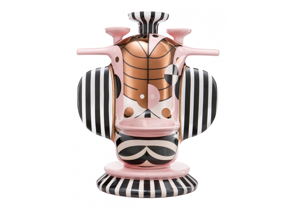 Duck Elephant Multivase conçu par Jaime Hayon pour Bosa est un vase en céramique glacée enrichie en métaux précieux, avec une forme représentant une fusion d'un canard et un éléphant, interprété par une perspective très personnelle. C'est un objet artistique qui, en dépit d'avoir une fonction possible comme vase à fleurs, vibre d'une essence sculptural. Disponible en 2 finitions.