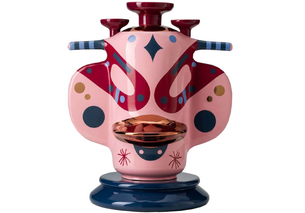 Duck Elefant Multivase conçu par Jaime Hayon pour Bosa est un vase de la collection Baile, en céramique émaillée enrichie de métaux précieux, avec une forme qui représente la fusion d'un canard et d'un éléphant interprété d'un point de vue très personnel. Edition limitée, seulement 99 pièces disponibles par décoration.