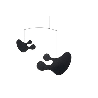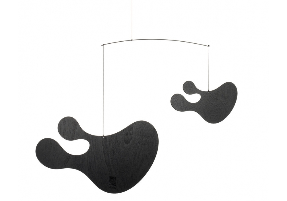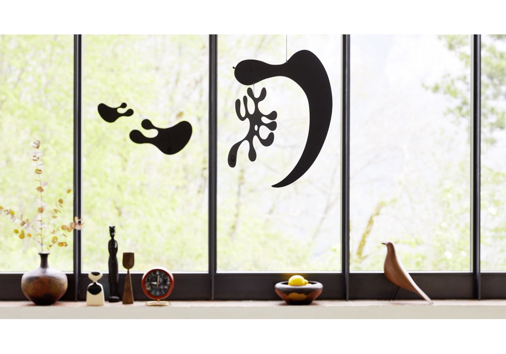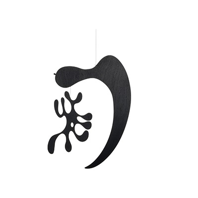 Plywood Mobile conçue par Charles & Ray Eames pour Vitra est une décoration suspendue en contreplaqué, finition laquée noire. Disponible en 2 modèles.