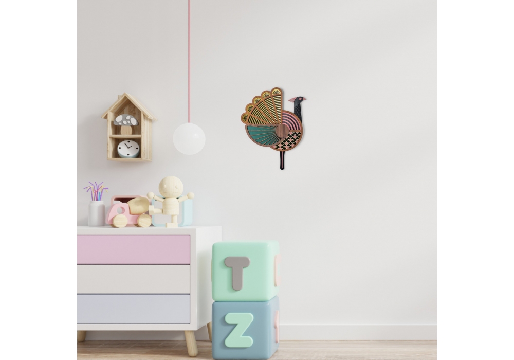 The Peacock 3 conçu par Tzachi Nevo pour Umasqu est une décoration de défilé en bois faite à la main avec une combinaison de différents matériaux tels que le placage, le MDF, le formica, le plexiglas, le plastique et le feutre peint avec des couleurs Molotow ™ Premium de qualité.