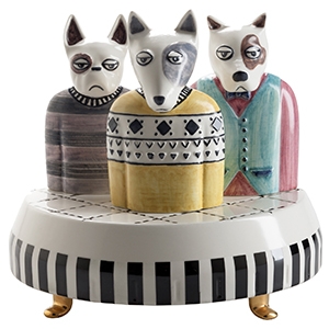 I Molossi conçu par Elena Salmistraro pour Bosa est un carillon en céramique, dans laquelle les chevaux traditionnels ont été remplacés par de dogues: le meilleur ami de l'homme devient ainsi un gardien symbolique qui nous accompagne dans la vie. Disponible en 4 modèles.