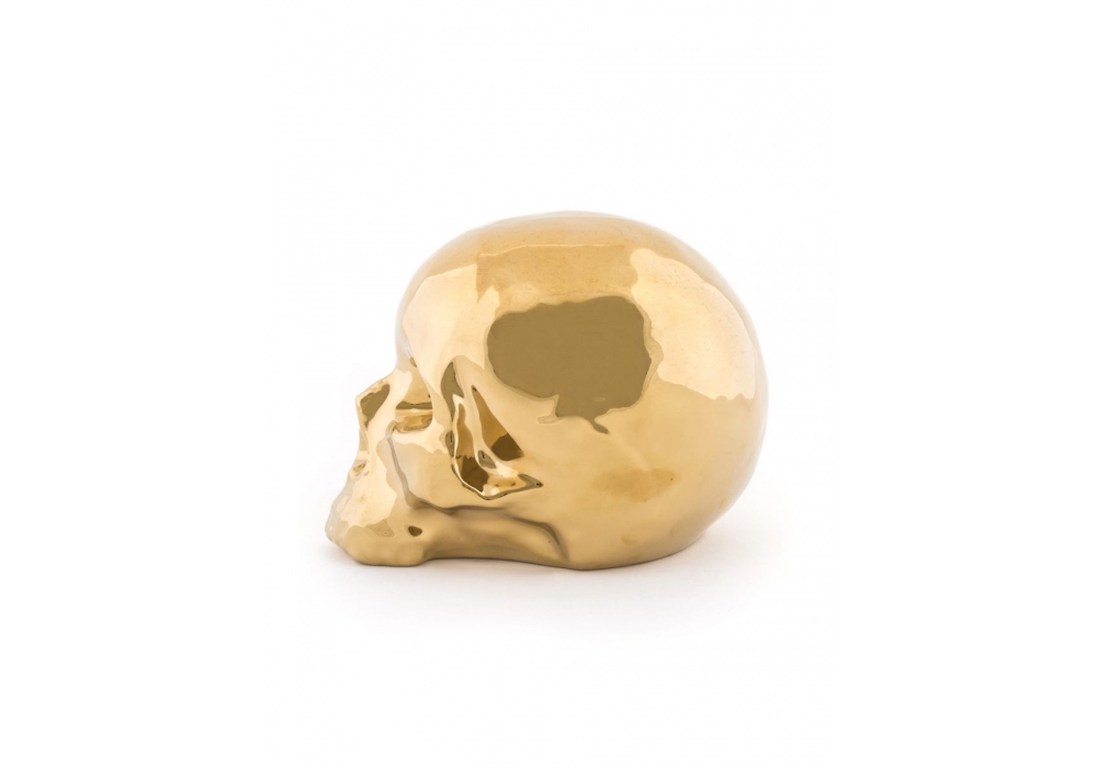 Il Mio Teschio conçu par Selab & Alessandro Zambelli pour Seletti est un accessoire d'ameublement entièrement réalisé en porcelaine dorée.