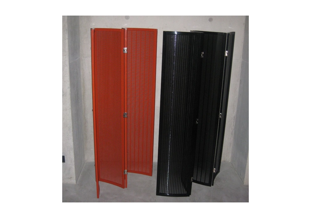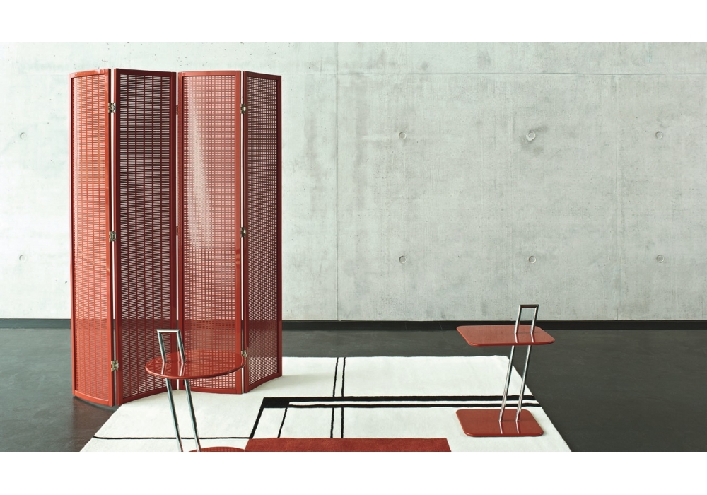 Folding Screen conçu par Eileen Gray pour ClassiCon est un beau paravent composé de quatre panneaux mobiles. Cadre en bois et panneaux de tôle ajourée de deux types. Disponible en 3 différentes finitions, laqué brillant.