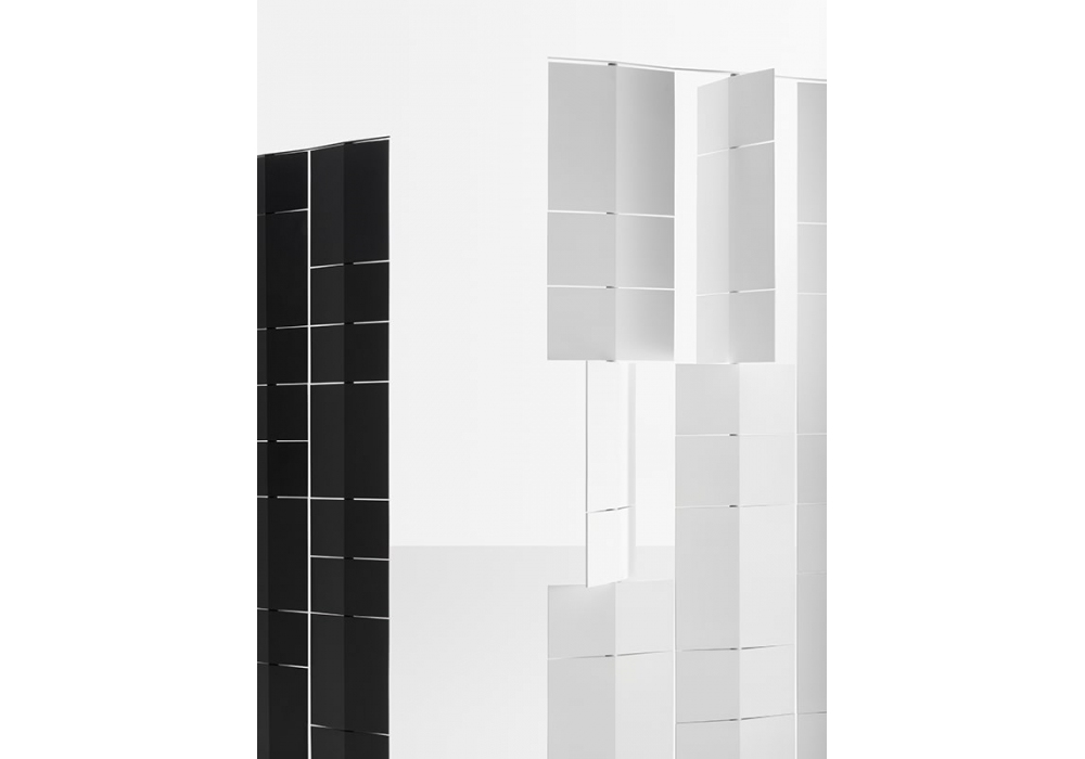 Divide IT conçu par Pitsou Kedem pour MDF Italia est un séparateur d'espace avec structure et étagères en tôle d'aluminium disponible en deux finitions et deux tailles.