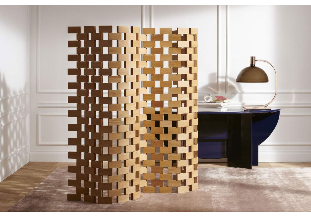 537 Paravent Ambassade conçu par Charlotte Perriand pour Cassina est un paravent composé de 331 blocs de bois en chêne naturel, chêne teinté noir ou noyer canaletto.