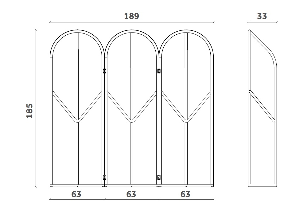 | Dimensions | • 63 x 33 x H 185 cm; • 189 x 33 x H 185 cm |