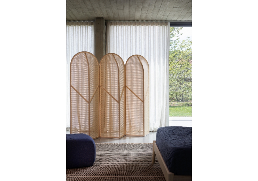 Colony Screen conçu par Skrivo pour Miniforms est un paravent en paille de Vienne avec structure en frêne naturel ou noir. La paille est toujours de la même couleur que la structure. Disponible en différentes tailles.