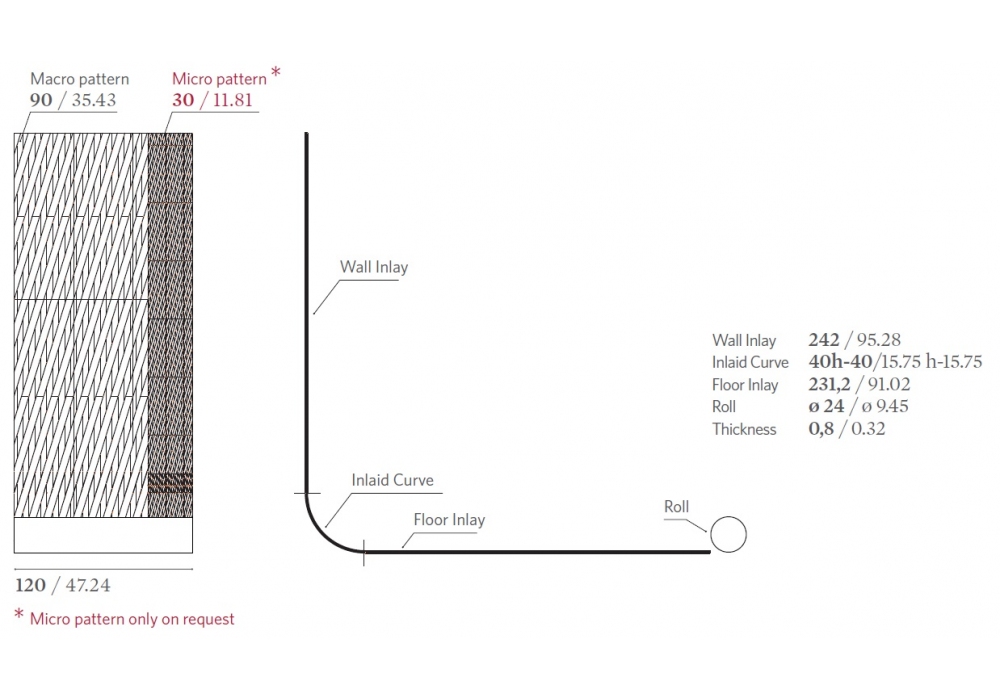 Bonbon conçu par Patricia Urquiola pour Budri est un papier peint composé d'une incrustation murale, d'un élément incurvé et d'un sol. Rouleau de marbre en Mandarine Onyx complète la réalisation. Micro motif uniquement sur demande.