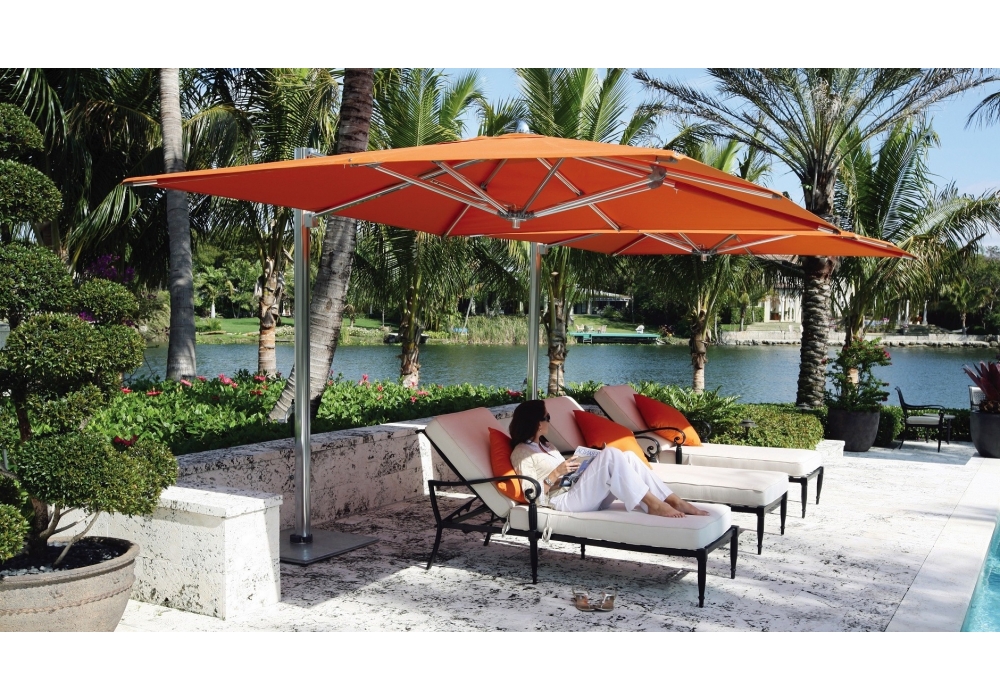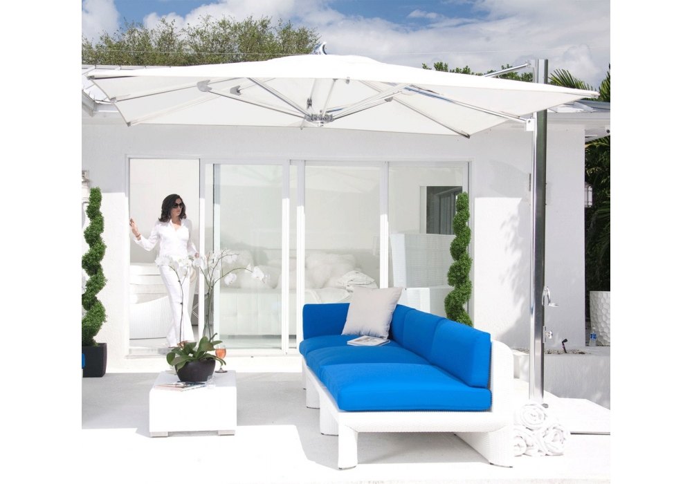 Ocean Master MAX Single Cantilever conçu par Tuuci est un parasol disponible en diferentes colores de tejido, 3 dimensions et 3 bases.