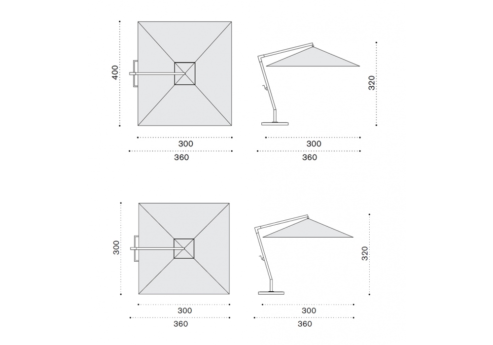 | Dimensions | 300 x 300 x H 320 cm; 400 x 300 x H 320 cm. |