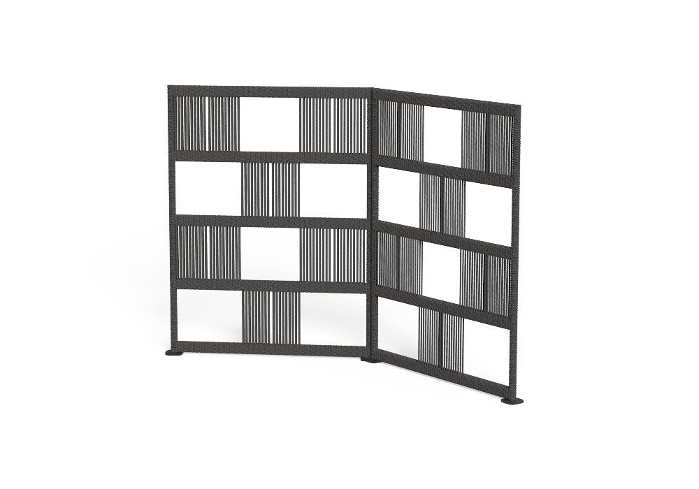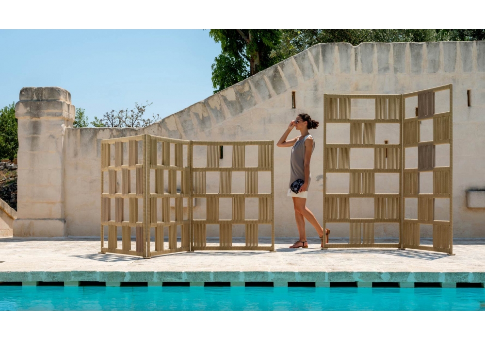 Scacco conçue par Ludovica et Roberto Palomba pour Talenti est une séparation de jardin, réalisée en aluminium et corde, disponible en différentes finitions et tailles.