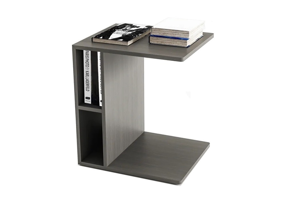 Saint-Germain conçue par Matteo Nunziati pour Karl Lagerfeld Maison est une table d'appoint en bois disponible dans les finitions suivantes : noyer américain mat, chêne teinté foncé, chêne teinté gris mat, bambou noir café mat.