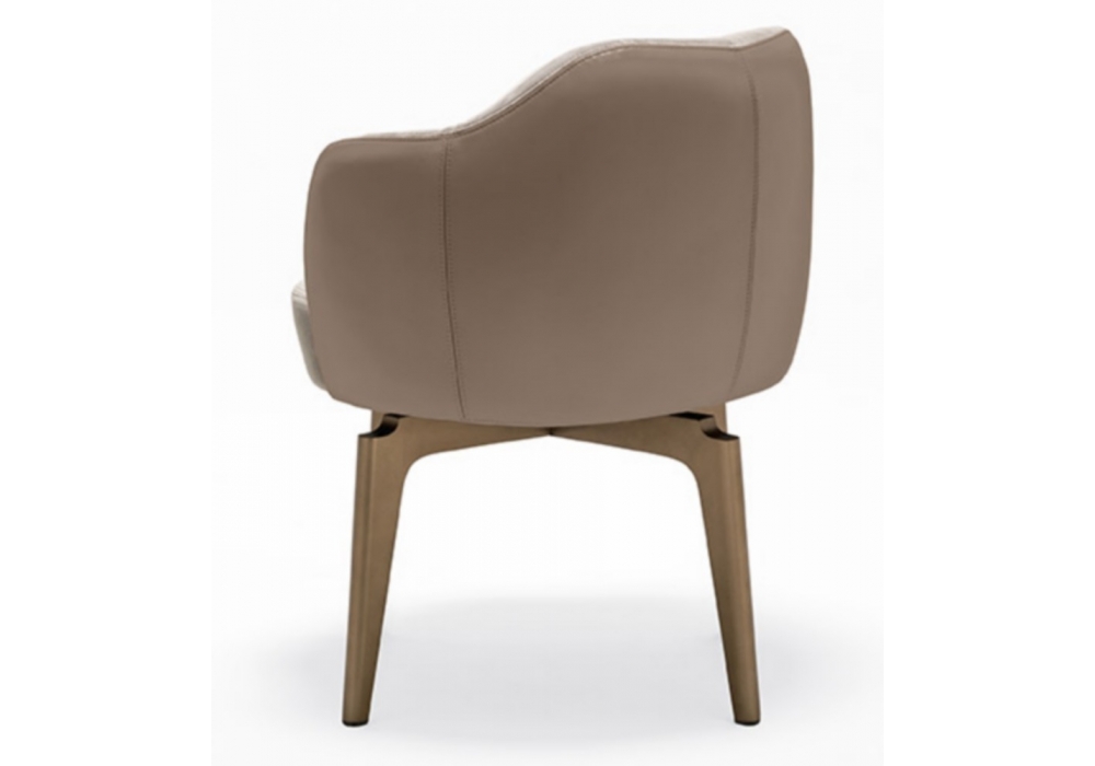 Elisa conçu par Carlo Colombo pour Giorgetti est un fauteuil avec assise pivotante. La base est disponible en noyer canaletto dans différentes finitions ou peinte en bronze avec effet naturel. Le revêtement n'est pas déhoussable et peut être en tissu ou cuir uni ou bicolore avec la partie externe en cuir et la partie interne en tissu ou cuir.