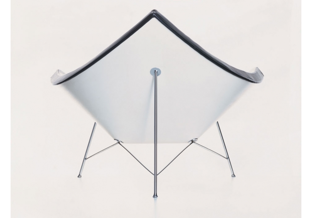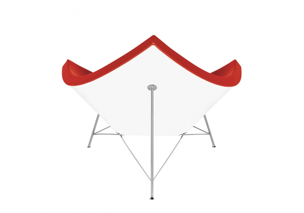 Vitra Coconut chair sedia: George Nelson, 1955. Cette création est typique du design des années cinquante qui se caractérise par une ligne pleine d’humour, des formes pures et l’utilisation parcimonieuse de matériaux. Nelson lui-même la comparait à un éclat de noix de coco qui se serait ouverte en huit morceaux, la couleur du Coconut Chair étant inversée: la coque extérieure de l’assise en matière synthétique blanche, le rembourrage d’une seule pièce est disponible en plusieurs coloris. En reprenant la forme naturelle et spatiale d’une coque, Nelson créa un fauteuil accueillant et confortable permettant à l’utilisateur d’adopter librement les positions les plus diverses.