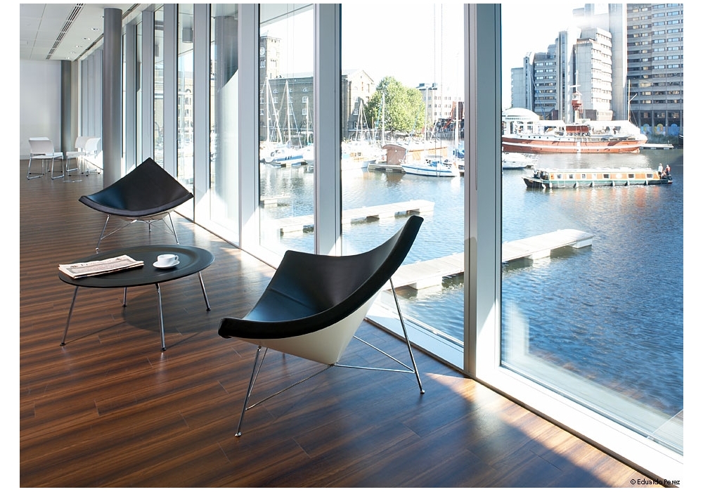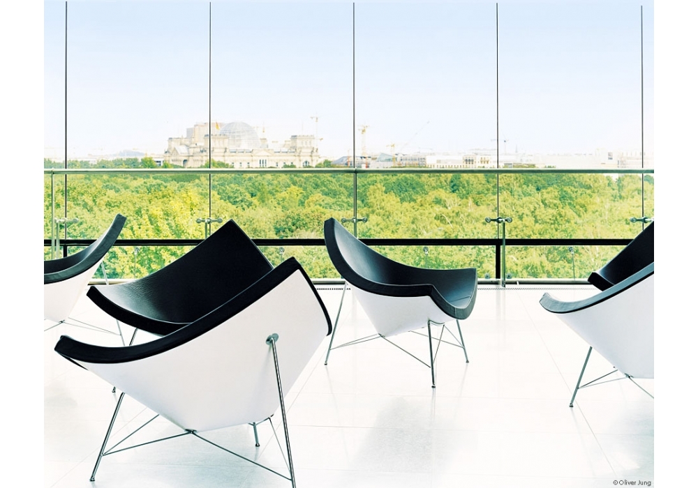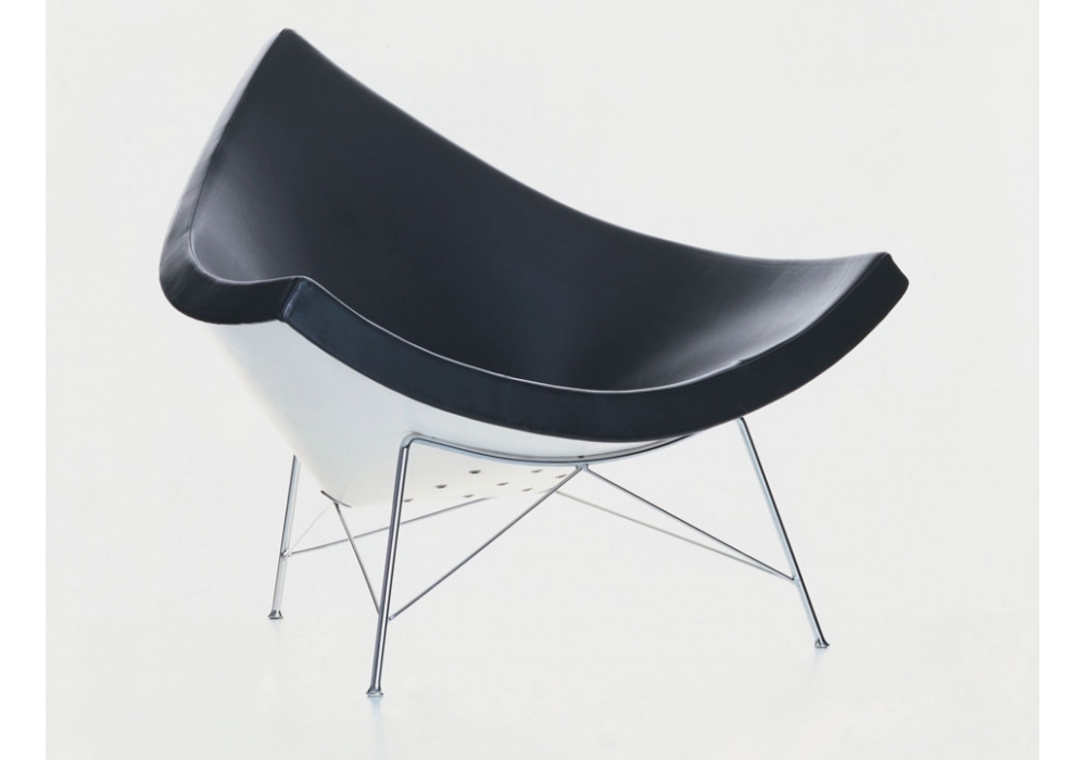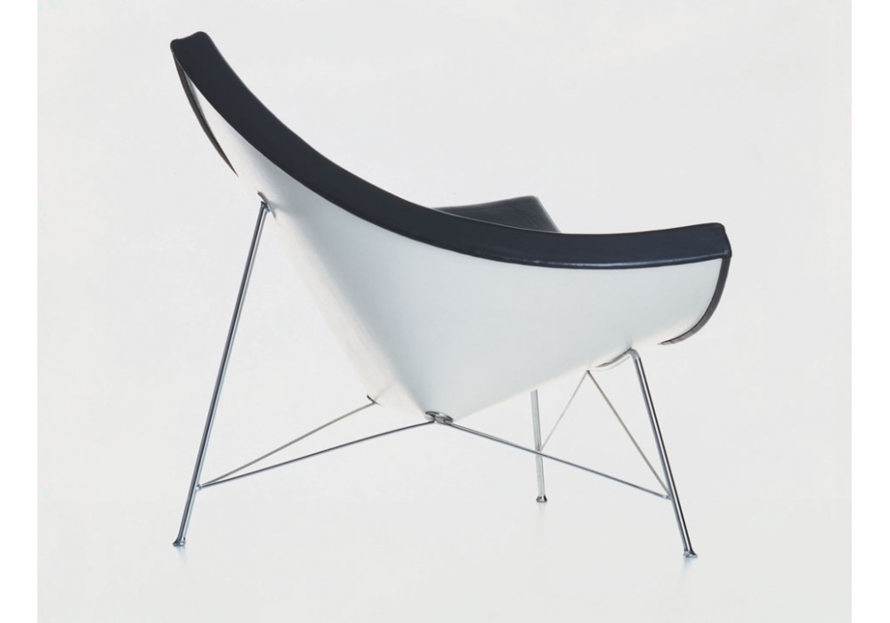 Vitra Coconut chair sedia: George Nelson, 1955. Cette création est typique du design des années cinquante qui se caractérise par une ligne pleine d’humour, des formes pures et l’utilisation parcimonieuse de matériaux.