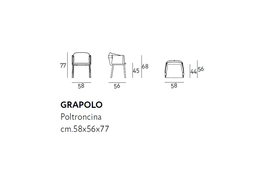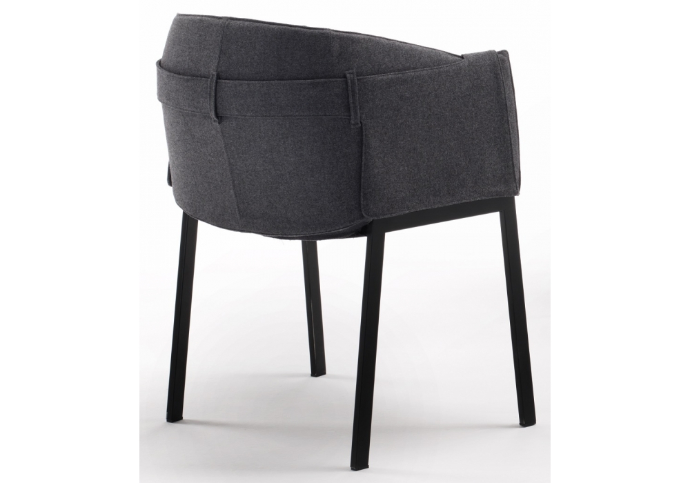 Grace designed by Giopato & Coombes for Living Divani is a family of 4 different small armchairs with shell in one-piece frame with steel insert and flexible, cold-expanded polyurethane foam. Seat frame in curved poplar plywood padded with polyurethane foam. Covering in 100% polyether thermally bonded onto a polyamide velveteen backing. Base in rectangular-section steel frame, with black epoxy powder coating. Fabric or leather upholstery, customized for each chair. The fabric version only is fully removable by zippers and Velcro fastenings. Seat depth 42cm.