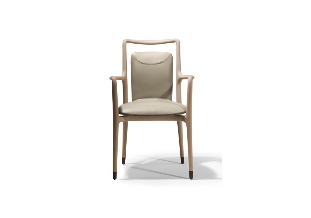Ibla designed by Roberto Lazzeroni for Giorgetti is an armchair with the frame in solid ash wood available in different finishes and the foot-caps in metal painted in a bronze colour with natural effect. The removable upholstery is in fabric or leather.