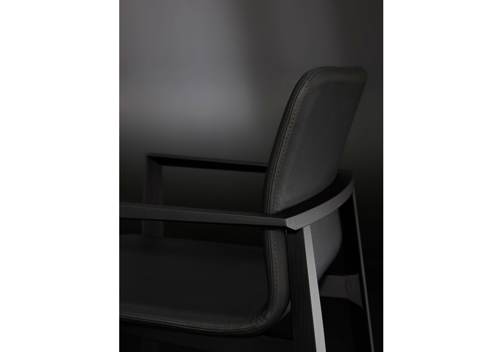 Garda designed by Piero Lissoni for Porro is an extremely comfortable armchair, with clean lines and a cocoon shape. Suitable to any room, from the house to the office, Garda also furnish collective spaces such as restaurants and hotels. It consists of a light and thin black stained ash structure and the seat can be covered in fabric available in multiple colors.