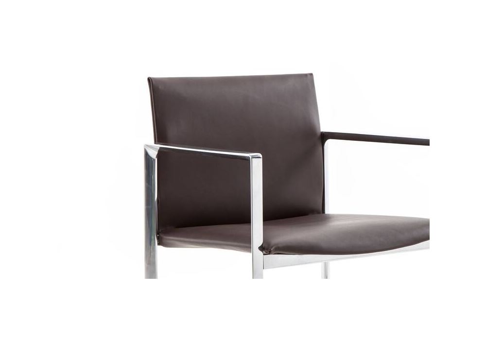 184 Eve conçu par Piero Lissoni pour Cassina est un fauteuil avec structure en aluminium poli ou peint et revêtement en cuir.