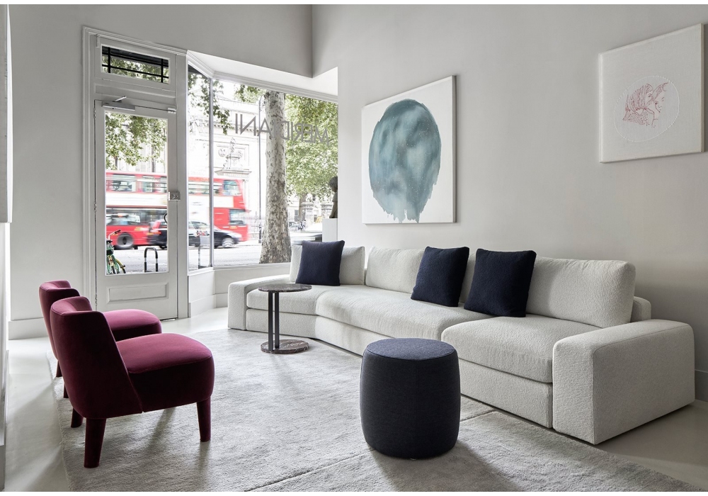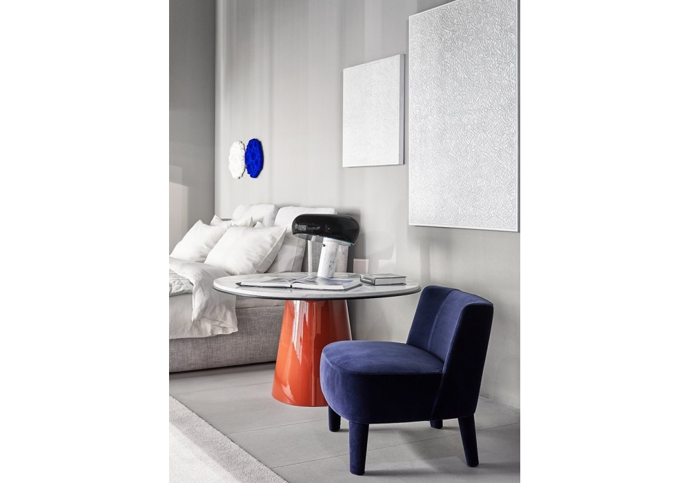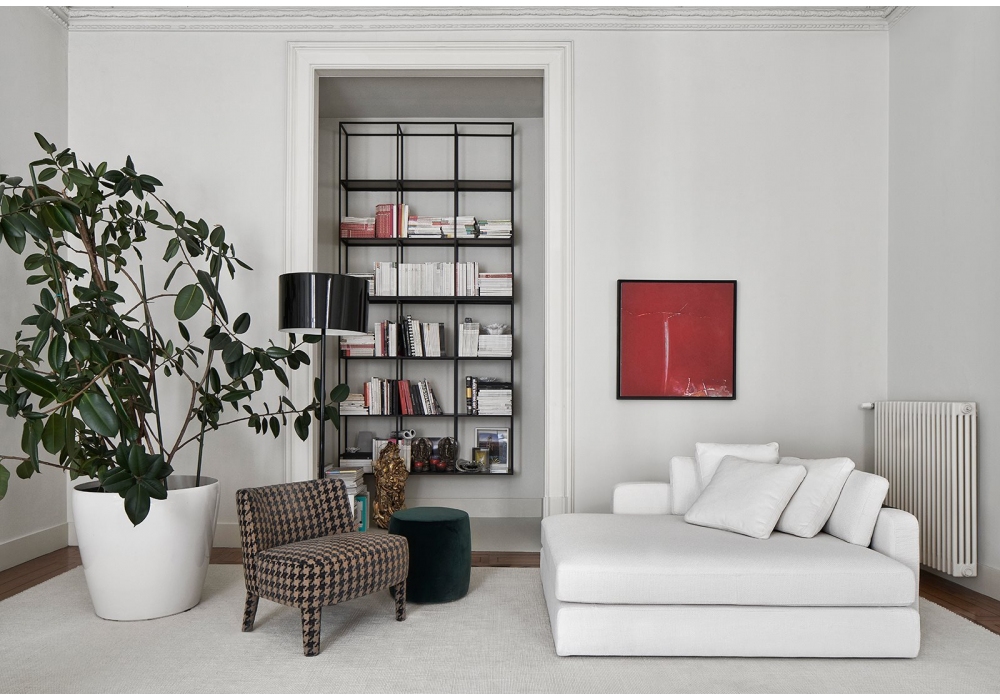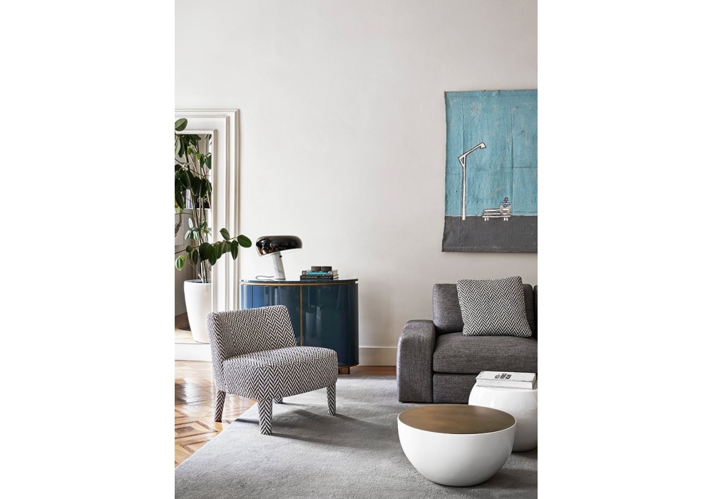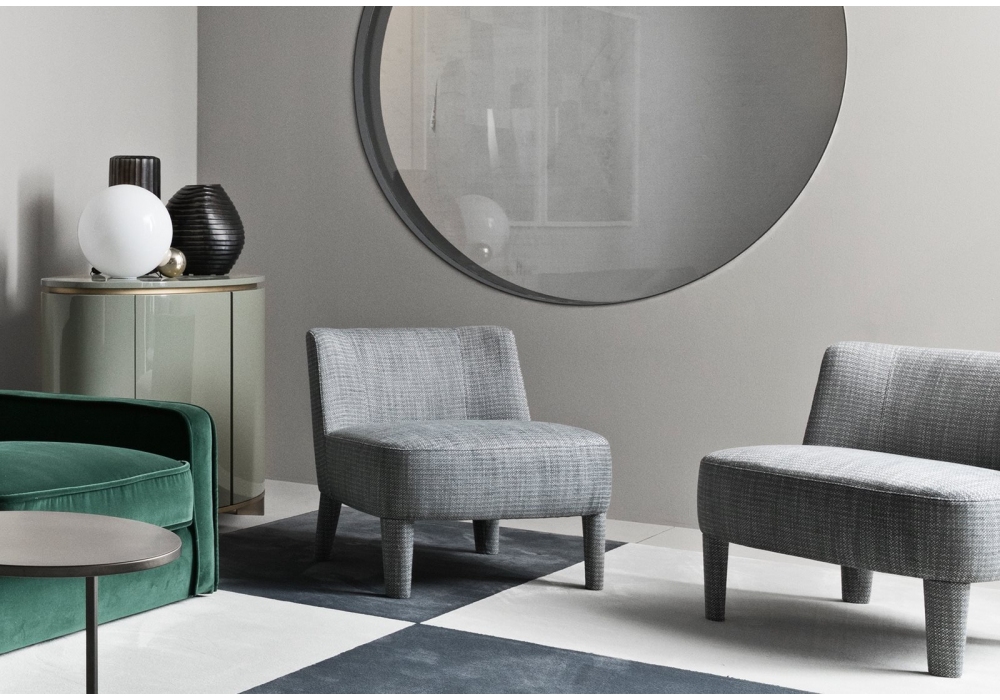 Isabelle conçu par Andrea Parisio pour Meridiani est un petit fauteuil avec structure en bois et métal, rembourrage en polyuréthane expansé moulé et fibre polyester, pieds en chêne ou tapissés. Disponible en différentes finitions.