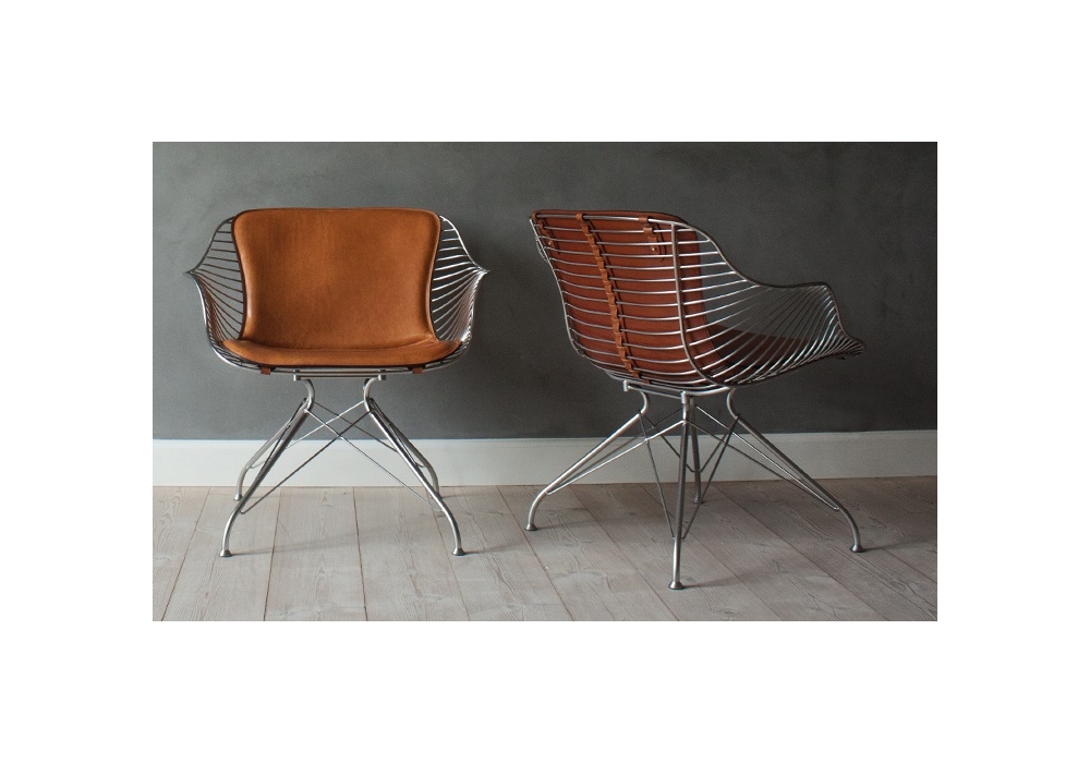 Wire conçu par Overgaard & Dyrman pour O&D est un petit fauteuil avec structure en acier verni en poudre noir mat ou acier chromé satiné. La collection Wire est disponible dans une sélection de 3 cuirs exclusives (Yellowstone, Matstone ou Elegance) pour un total de 9 couleurs.
