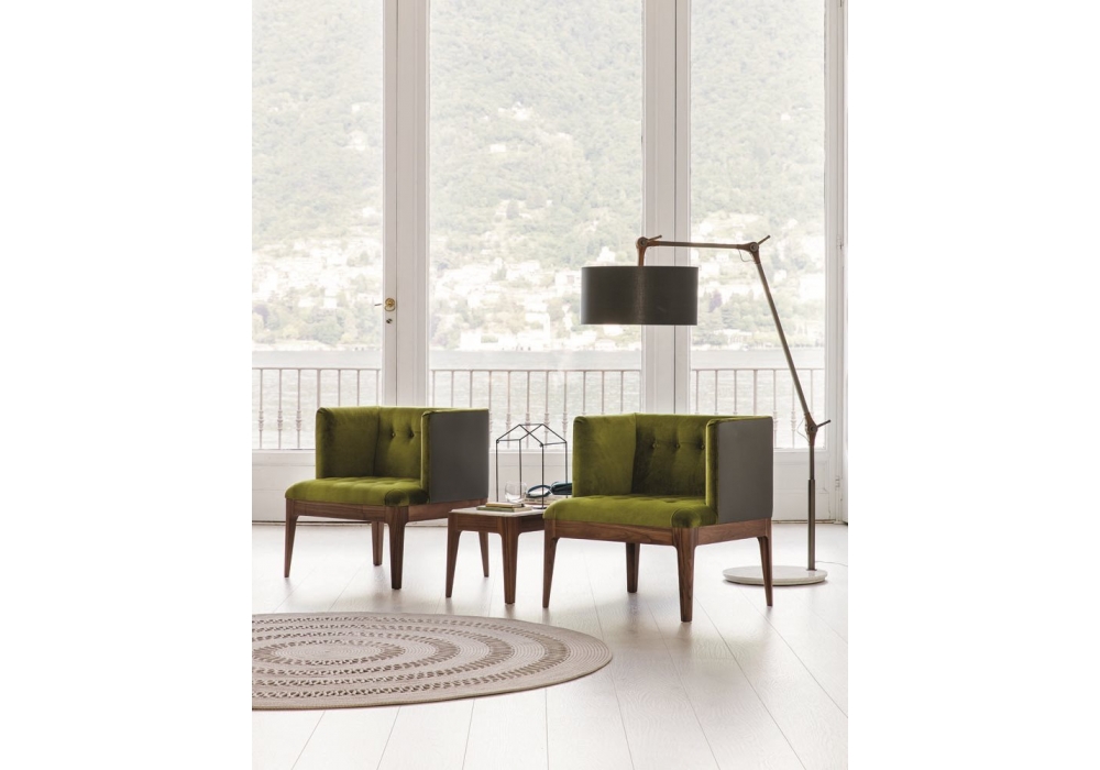 Wendy conçu par Carlo Ballabio pour Porada est un petit fauteuil avec structure en noyer canaletta massif disponible en différentes finitions. Assise avec capitonné en tissu ou cuir.