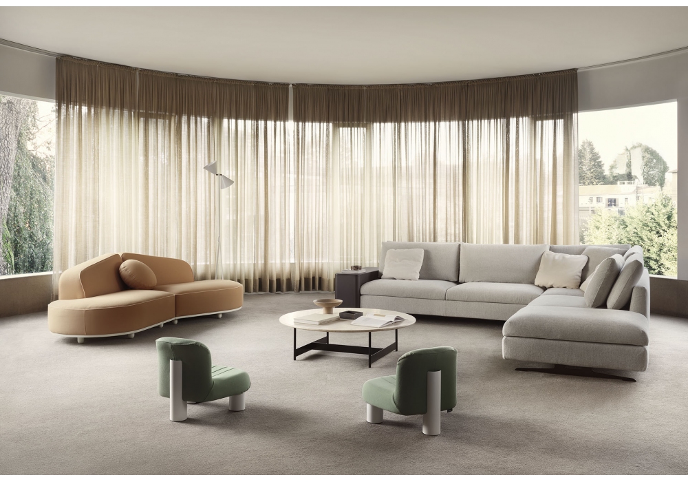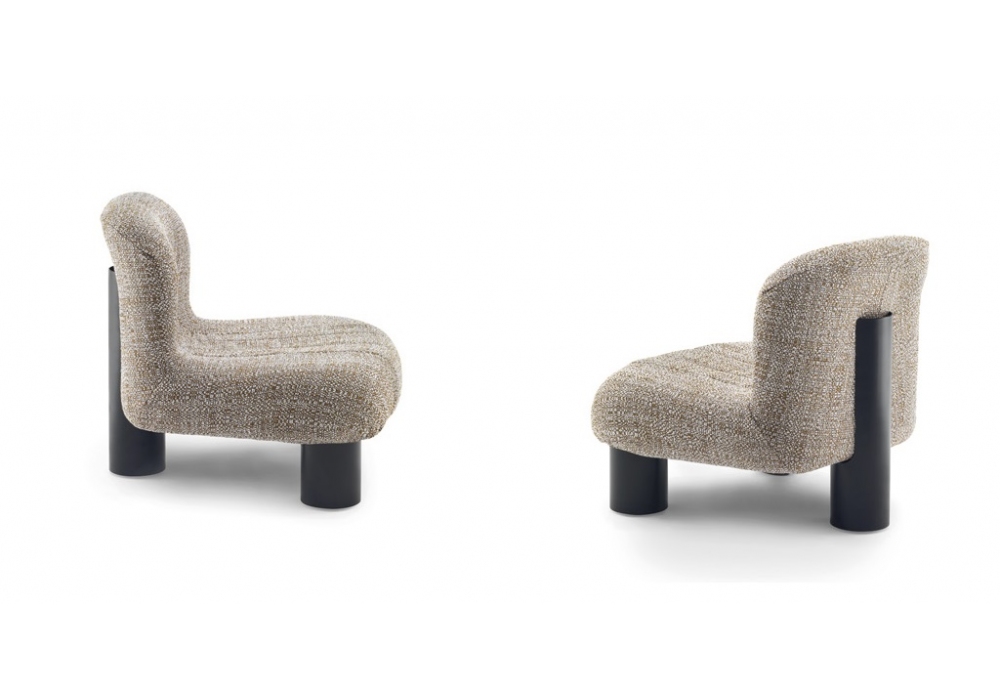 Botolo conçu par Cini Boeri pour Arflex est un fauteuil bas avec une base en métal laqué et un revêtement en tissu ou en fourrure.