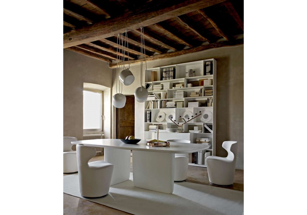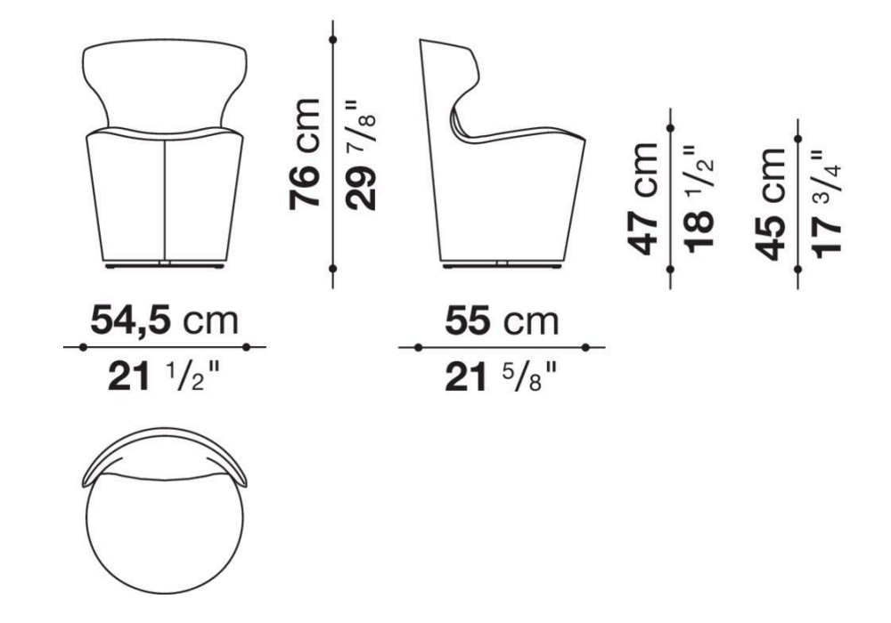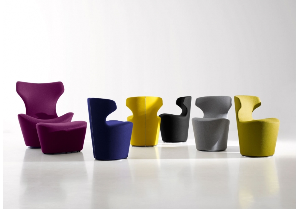 Mini Papilio conçu par Naoto Fukasawa pour B&B Italia est un petit fauteuil avec base pivotante, avec ou sans mécanisme de retour, en acier laminé et aluminium extrudé. Structure interne en tube d'acier et profilés en acier avec rembourrage en mousse de polyuréthane flexible à froid Bayfit®, revêtement en fibre de polyester. Revêtement en différents tissus ou cuirs.