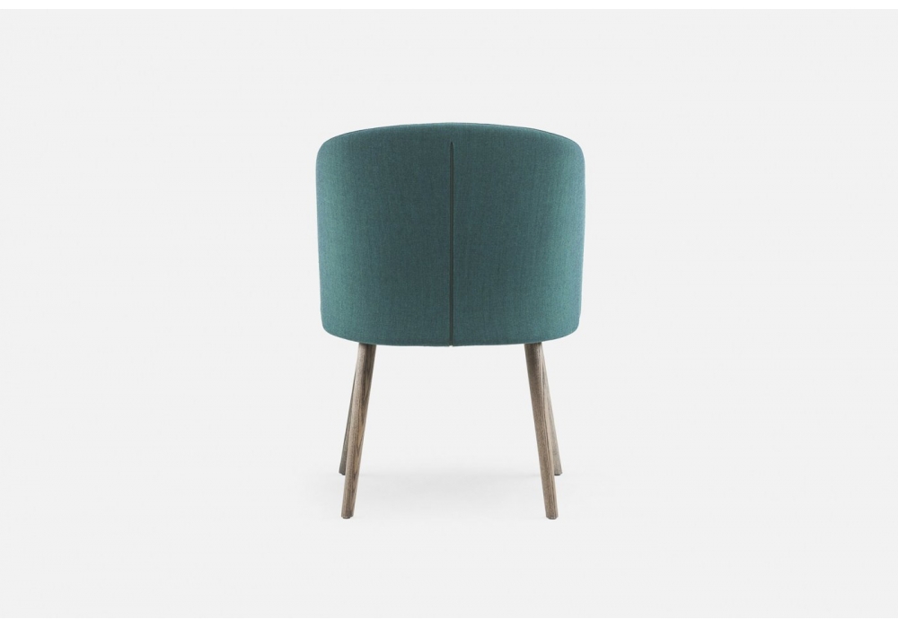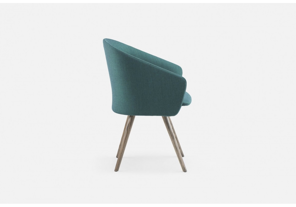 Saia conçu par Matthew Hilton pour De La Espada est un fauteuil à manger avec revêtement en tissu ou cuir et structure en bois disponible en différentes finitions.
