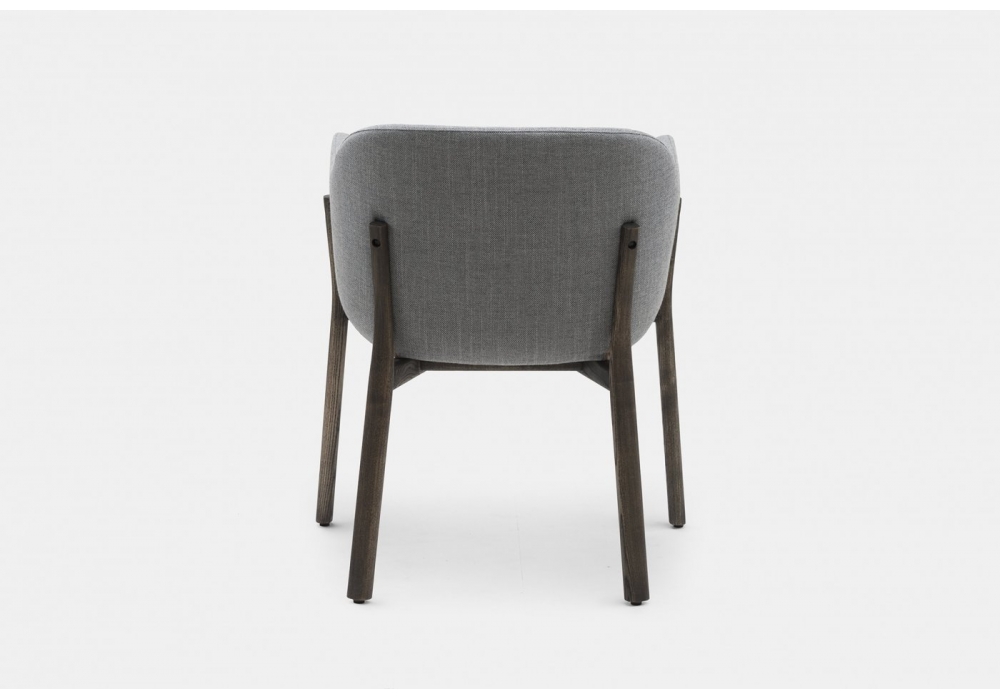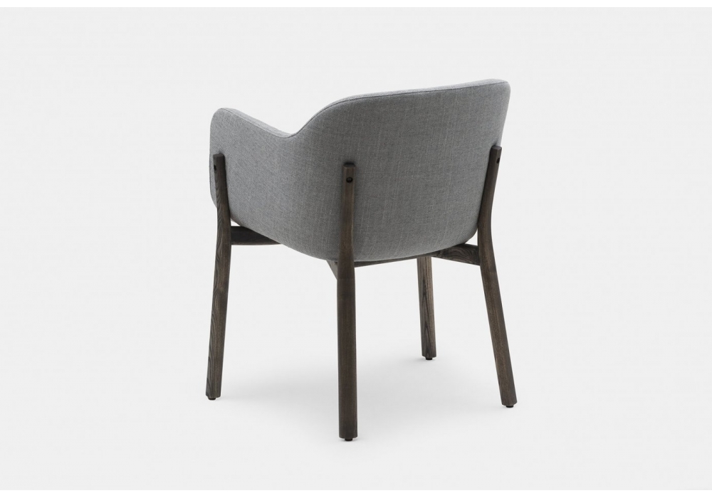 Porto conçu par Matthew Hilton pour De La Espada est un fauteuil à manger avec revêtement en tissu ou cuir et structure en bois disponible en différentes finitions.
