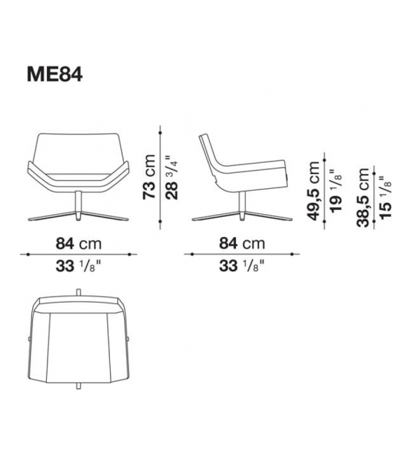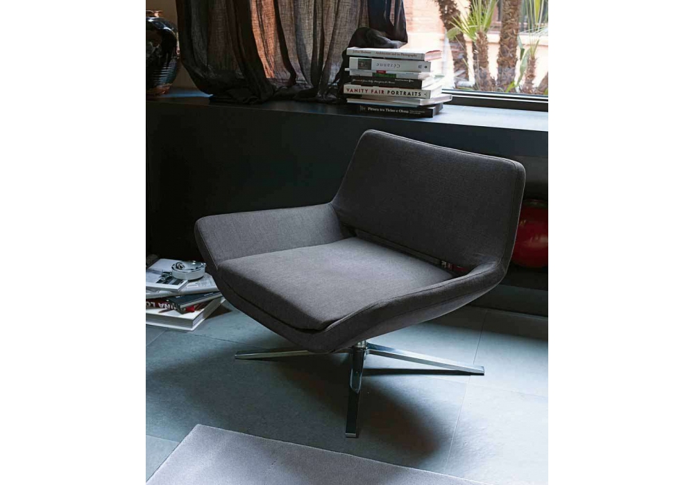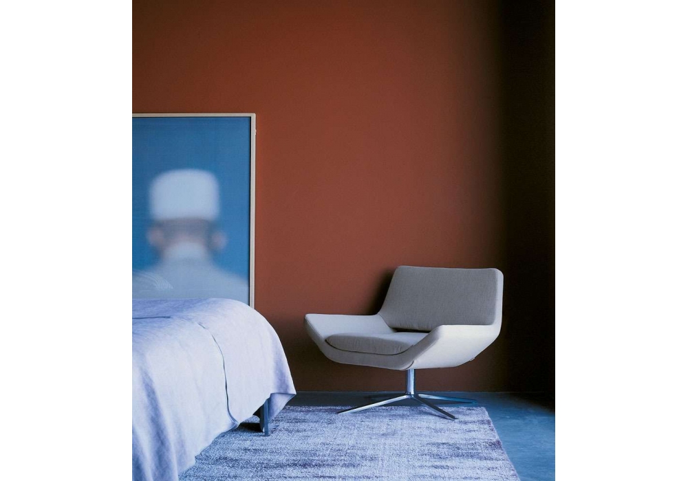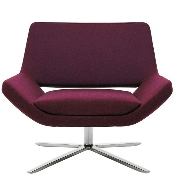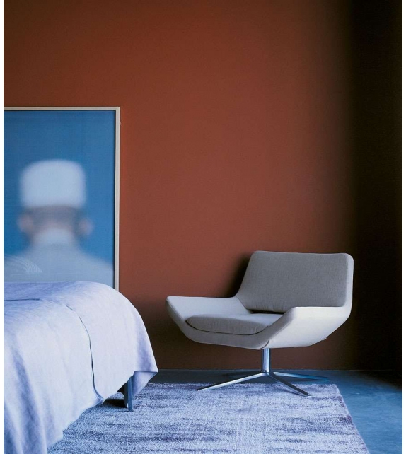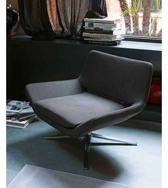 Metropolitan conçu par Jeffrey Bernett pour B&B Italia est un petit fauteuil rembourré avec base en aluminium brossé brillant ou verni nickel bronzé. Revêtement disponible en tissu ou cuir.