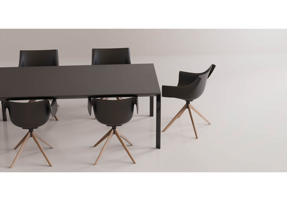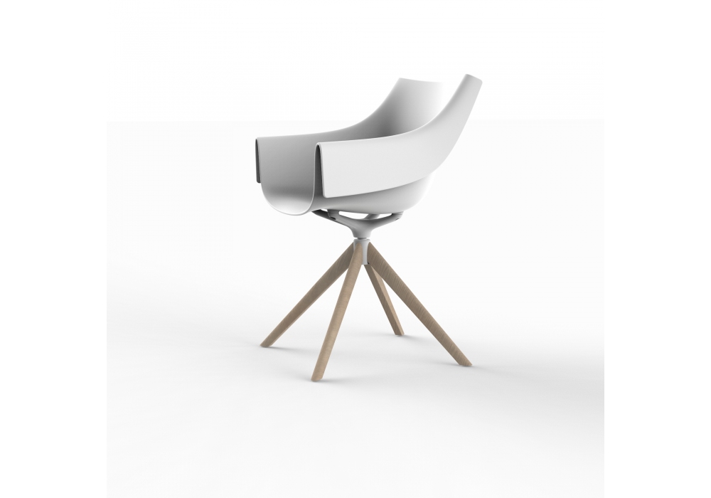 Manta conçu par Eugeni Quitllet pour Vondom est un fauteuil pivotant avec pieds en bois réalisé avec assise en polypropylène et base en métal. Disponible en différentes finitions.