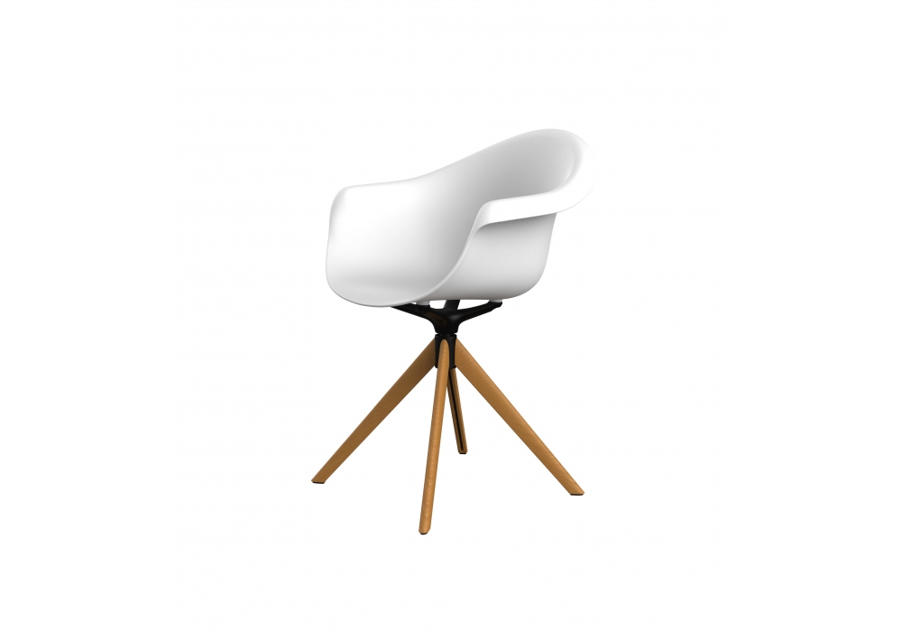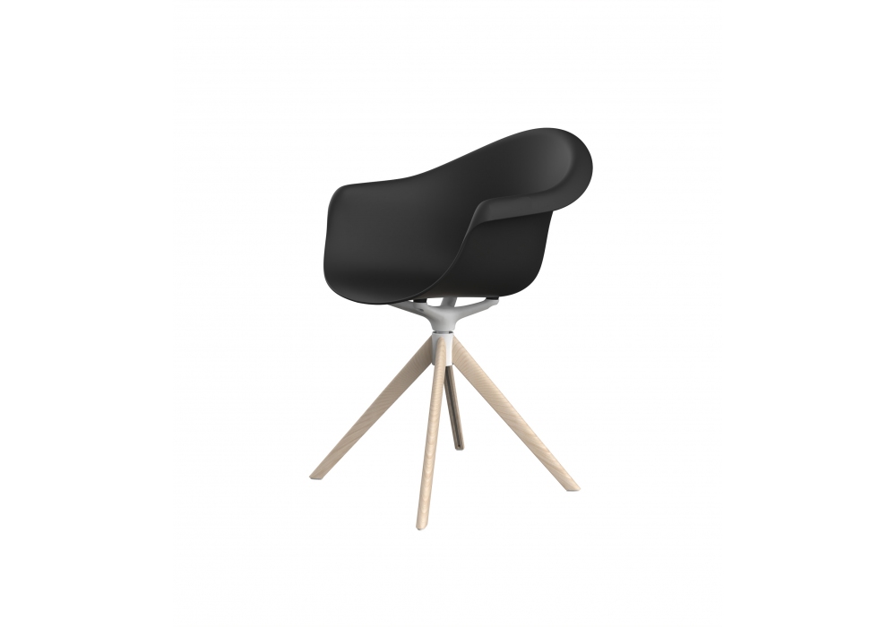 Incasso conçu par Archirivolto pour Vondom est un fauteuil pivotant avec pieds en bois en polypropylène ou assise en polycarbonate translucide. Disponible en différentes finitions.