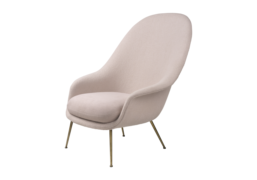 Bat conçue par GamFratesi pour Gubi est une chaise longue entièrement rembourrée disponible avec des pieds en métal ou en bois.