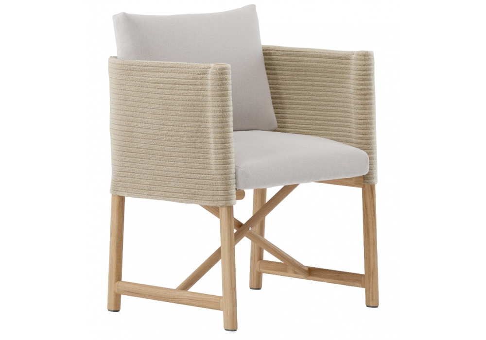 Giro conçu par Vincent Van Duysen pour Kettal est un fauteuil pliant composé d'une structure en bois de teck. La coque est recouverte de corde tressée avec des coussins rembourrés et tapissés. Giro est disponible en différentes finitions.